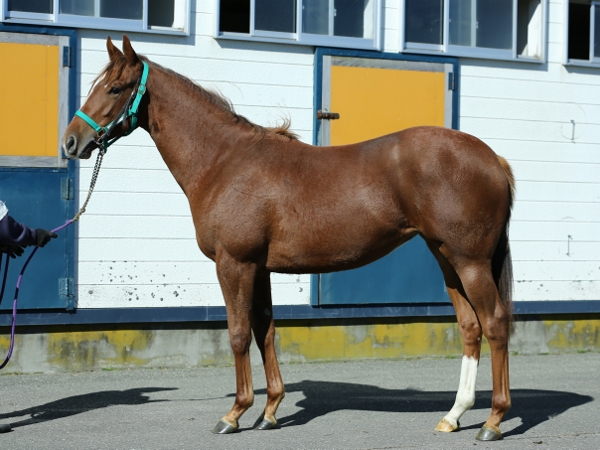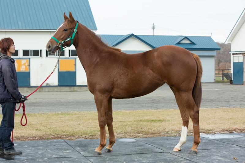 ■メニュー ・腹帯を締め、ドライビング中。 ■測尺 ・体高:149・胸囲:174・管囲:18.7・体重:439 ■コメント ・10/17入厩。入厩直後から騎乗馴致を開始しました。 ・今後の変わり身に期待したい。 ===========