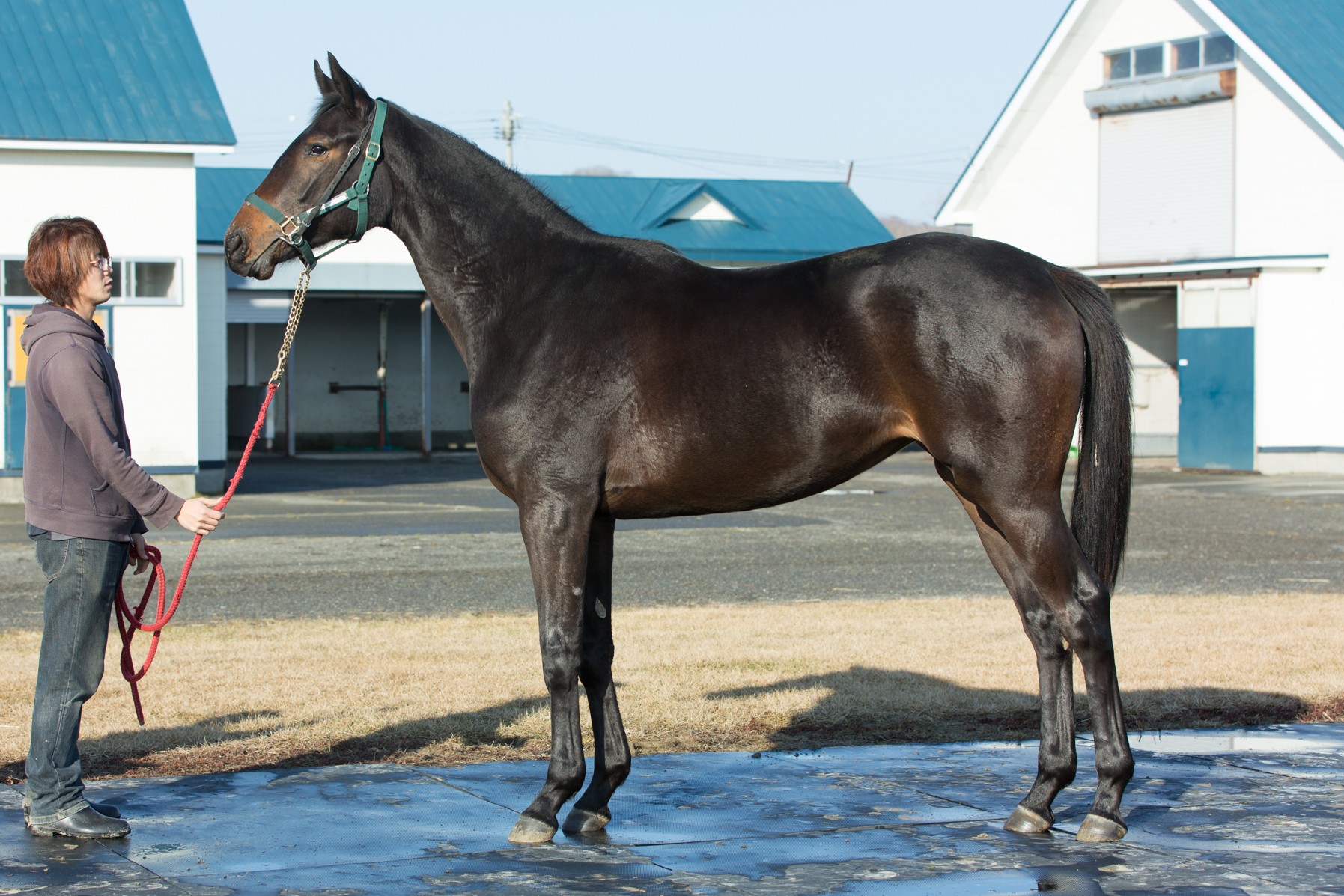 ■メニュー ・屋外にてダク、キャンター騎乗。3000m ■測尺 ・体高:162・胸囲:180・管囲:19.8・体重:491 ■コメント ・月中にはやや入れ込みを感じられたが、月末には落ち着きもでて安心です。 ・走りも良くなってますので順調です。 ===========