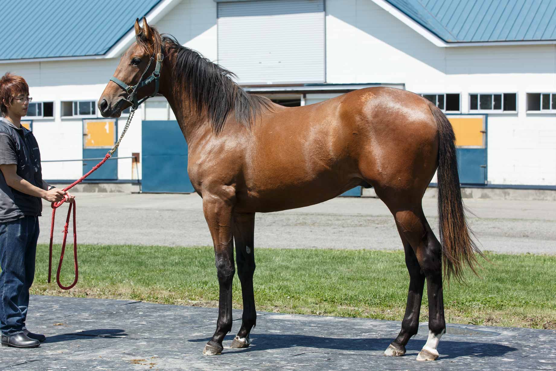 ■メニュー ・昼夜放牧、外傷の為舎飼い。 ・体高:152・胸囲:172・管囲:19.8・体重:404 ■コメント ・やや精神面での成長が欲しいですが、馬体は良くなりつつあります。 ・外傷の為、やや小休止です。 ===========